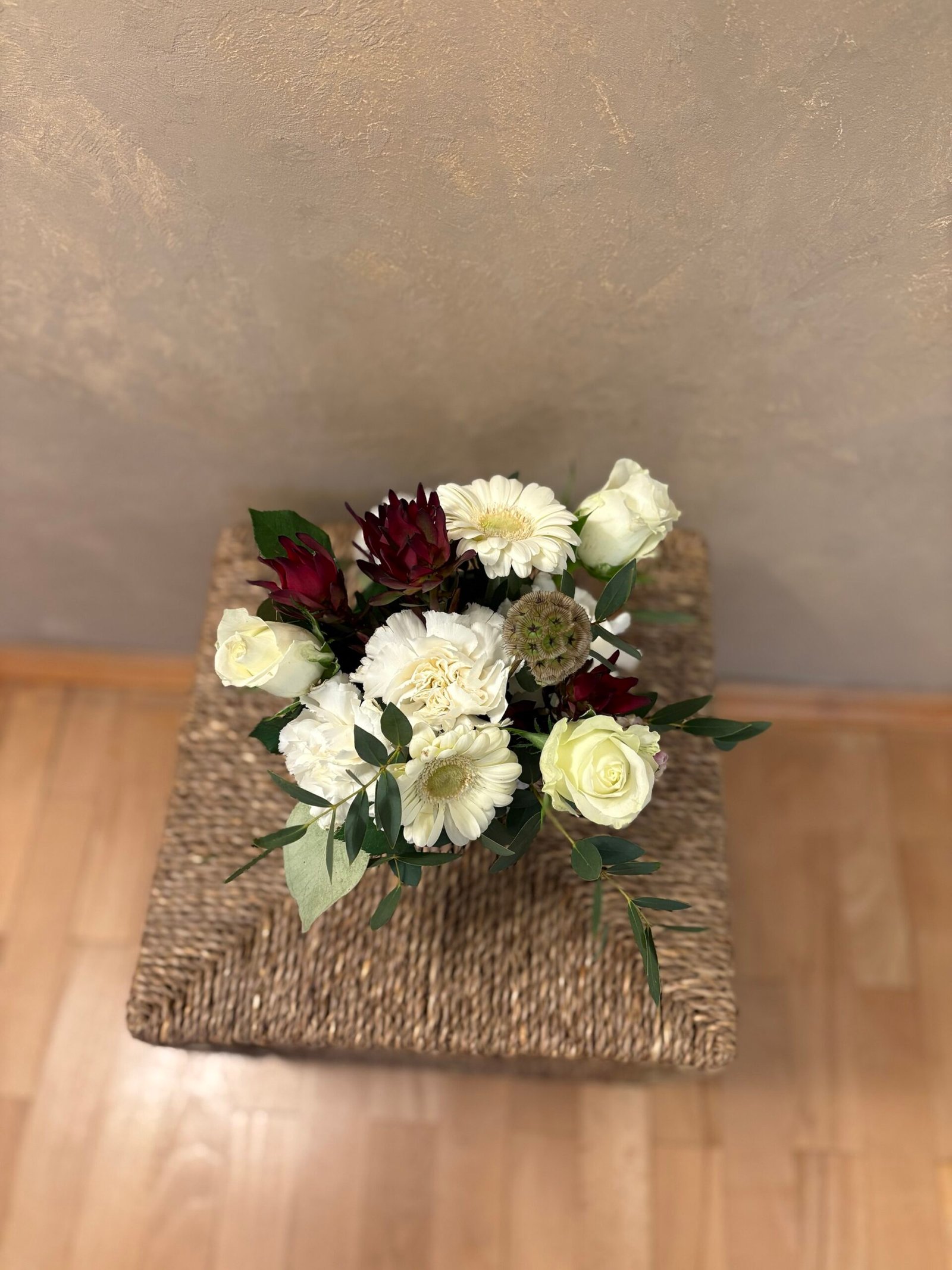 Inspirat de floarea lunii ianuarie – garoafa, simbol al admirației, purității și începuturilor sincere – acest aranjament floral aduce un plus de lumină și rafinament în sezonul de iarnă. Nuanțele de alb și verde natural transmit calm, echilibru și eleganță, fiind perfecte pentru început de an.