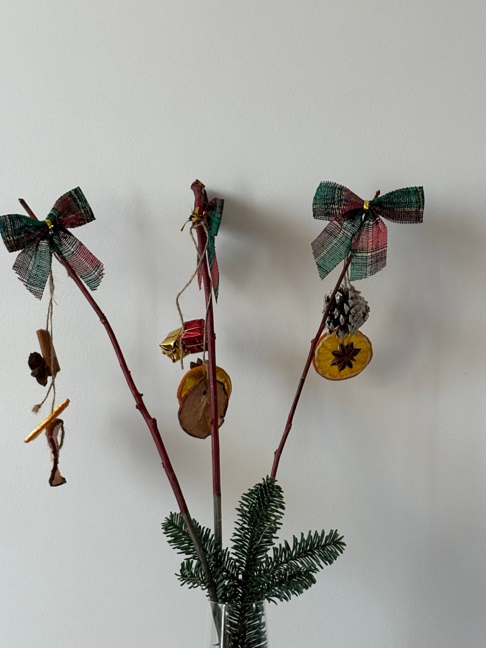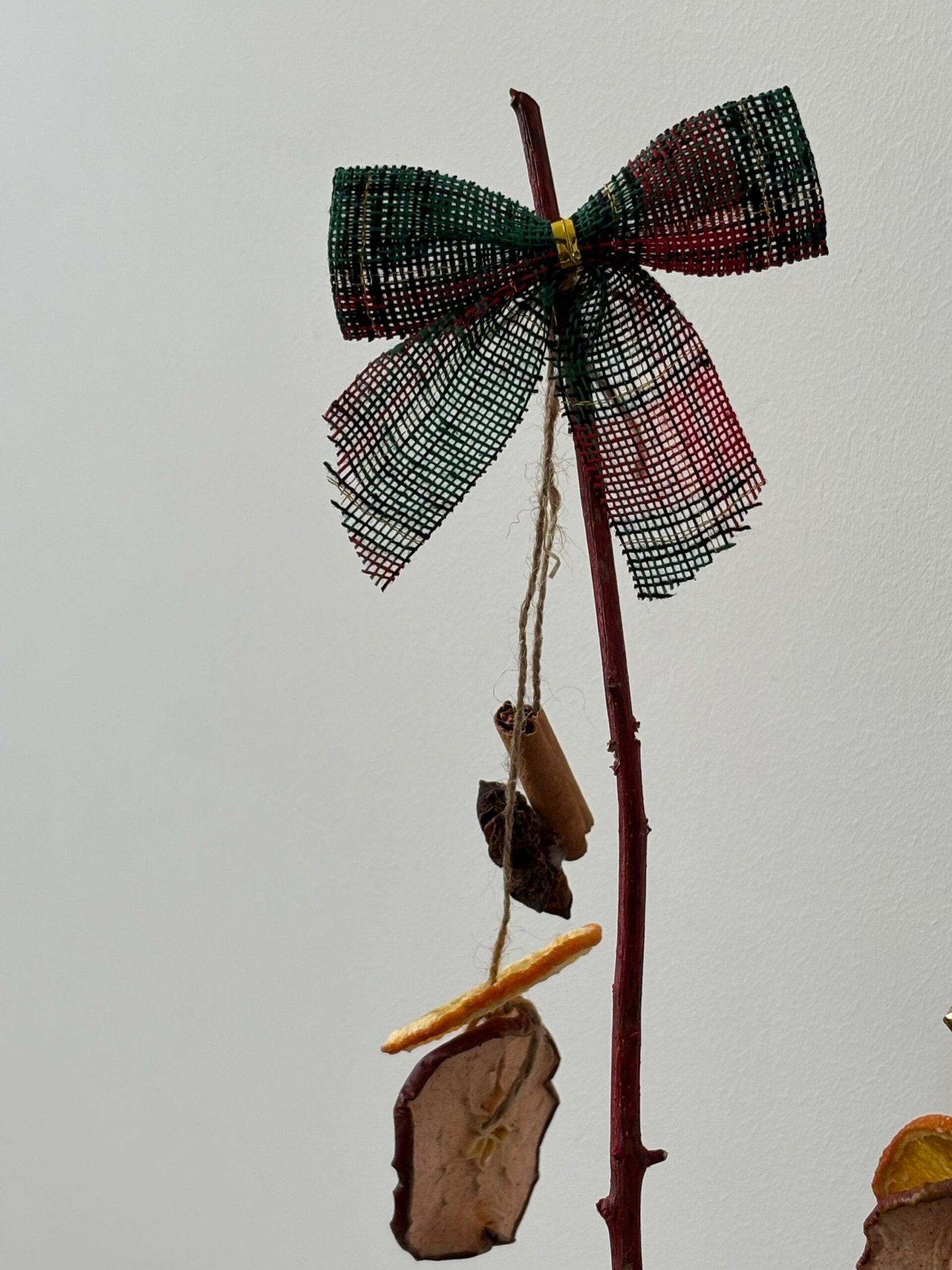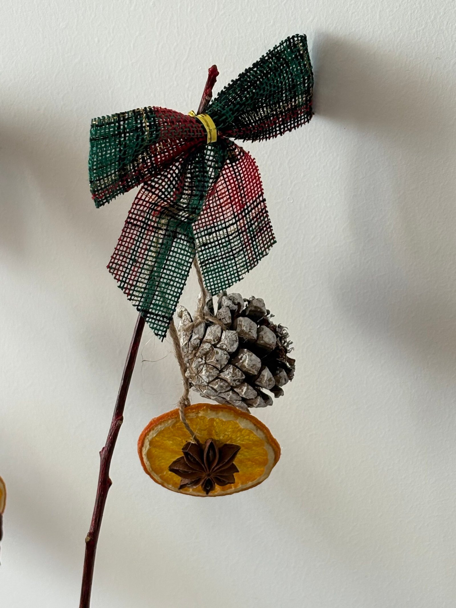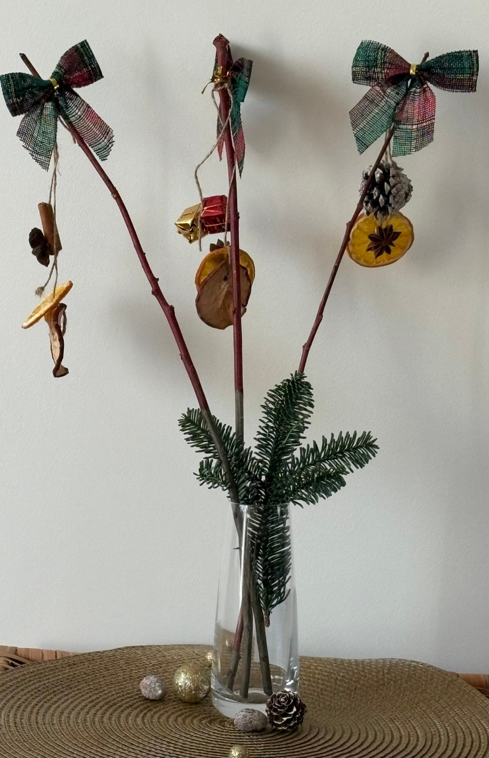 Acest set decorativ este realizat manual, din crenguțe naturale, condimente și mici elemente festive — perfect pentru a-l așeza în ghetuțele copiilor, la intrare, într-o vază îngustă sau chiar ca un mesaj: